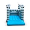 Die attraktive Hüpfburg in Fußball-Optik besticht durch das Dach und die vernetzten Fenster mit besonderer Sicherheit, da Kinder nicht einfach aus der Hüpfburg herausfallen oder klettern können. Zudem haben Aufsichtspersonen durch die großen Sichtfenster jederzeit Einsicht in das Innere. Da die Hüpfburg oben geschlossen ist, kann sie auch an Regentagen genutzt werden. Die Hüpfburg bietet bis zu 12 Kindern gleichzeitig Platz.